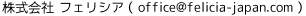 1、個人情報の利用目的 取得する個人情報は、セミナー及びサービスに関するご案内・ご連絡、商品のお届け、及びフェリシアからの情報提供のために利用します。 2、個人情報の第三者提供 フェリシアでは取得する個人情報を第三者に提供することはありません。 顧客管理データの情報についてセミナー開催、サービス提供の共同利用をさせていただいております。 共同利用者は、当該セミナー開催、及び、当該商品販売の目的のみにおいて、個人データを利用いたします。 3、個人情報の提供の任意性 当社へ個人情報を提供されるかは任意となります。ただし必要な個人情報を提供いただけない場合、当社はお客様のお問い合わせに対して、適切に対応出来ない場合があります。 4、個人情報に関するお問い合わせ お客様から、ご提供いただいた個人情報の利用目的の通知、開示、訂正、追加または削除、利用の停止、消去または第三者への提供の停止のご相談などがありましたら、株式会社フェリシアまでお問い合わせください。 |